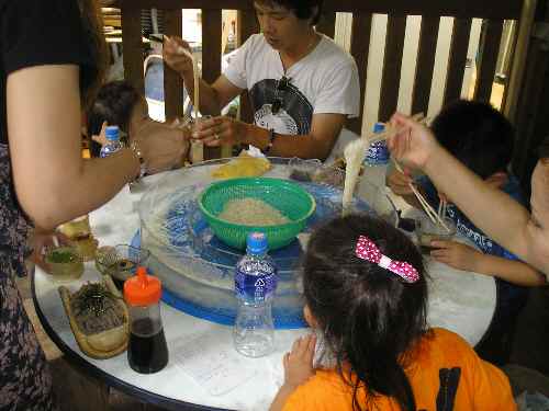 今年は近場でうちから1時間半程のとこにしました。 とことこトレンと美川ムーバレーです。 どちらも子供たちが喜びそう ![]() 1tもの石が回っています。 4階建てです。 建物の外景は段々で、中は長い階段。 付きあたりの一番下段が食堂です。 昨年新しくなったようです。 観光客いっぱいでガタくんとゴトくんの2台が連なって走ります。 数百匹飛び交ってるこうもりトンネルと きらら夢トンネルに 「きゃ~ 」大喜び。40分程行った先まで錦パレスの方に迎えに来てもらいホテルまで帰って 水はとっても冷たいのですが がちがち震えながらも 流れをすかっり楽しんでいました。 単純弱放射能冷鉱泉でお肌すべすべです。 夕食まで無料でやってたあんま機を体験 う~ん! 疲れが取れたよな…。 いただきま~す! 最近はバイキングが多い中、珍しく懐石です。 鮎の塩焼きに唐揚げ。 美燿花も彩葉もぱくぱく。 大人には 美味しいコーヒー 子供たちには自販機の牛乳のサービスもありましたよ。 今回の目的 美川ムーバレー を地底探検します。 中は寒いほどひんやりしています。 深い深い井戸 高い所から流れてくる滝 インディージョーンズの世界です。 記録カードとコンパスを持って随所にある謎を解いて行きます。 途中、しん君が答えを探しに引き返したりして 1時間半、答えを見つけ探検は終わり。 この水車でそば粉を引いて います。 待つこと1時間。 食堂の下を流れてる川で いい子して待っていました。 美味しかったです。 一泊二日 ゆっくり遊べました。 来年からは 行き先持ち回りにしようということになって 来年は どこでしょうか? |