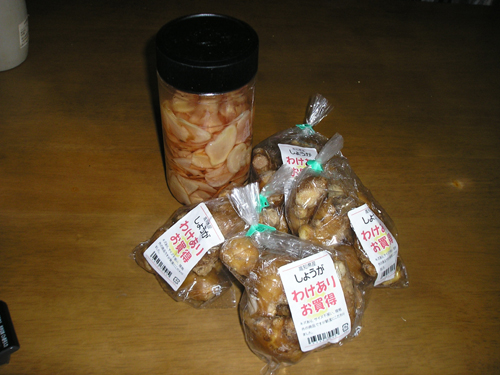 ![]() で、とても寒い冬になるそうです。 大人買い 8袋ぜ~んぶ買いましたよ。 スライスして、30秒くらいさっと湯にとおして社販買った寿司酢に漬けました。 コーヒービンに4本。 生姜については http://www.syouga.net/ http://www.1101.com/ginger/index.html 3~4枚かじると足先がポカポカ 即効効き目があります。 今年の冬は寒さ知らずで過ごせそう ![]() |