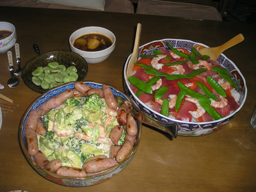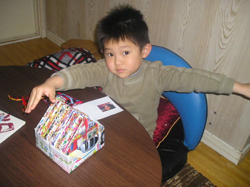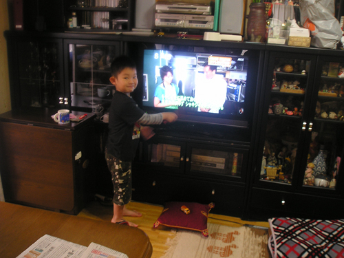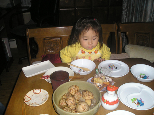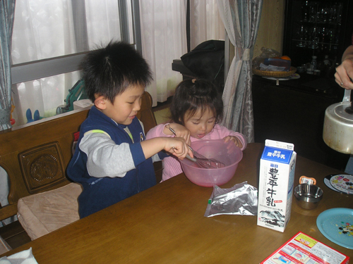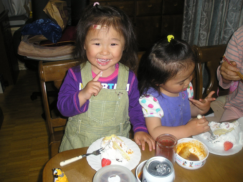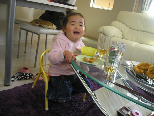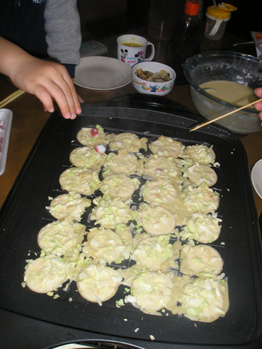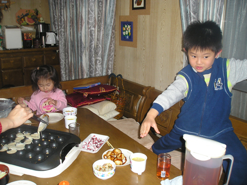 今年も忘れず 植えっぱなしのチューリップとヒヤシンスがが咲いてくれました。 今日は雨で一日中家の中 おやつのゼリー作りです。 夕食は遊びながらできるタコ焼きです。 まず、天かすをカリカリにしてキャベツ 半分まで返して、くるっと巻いてひっくり返します。 たえずクルクル。 こんがり焼きあがりました。 昂暉、最近のブーム 「俺、参上」です。 食後は、 歌って踊れる美燿花です。 |
