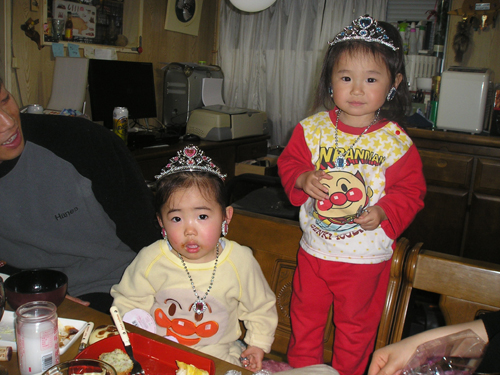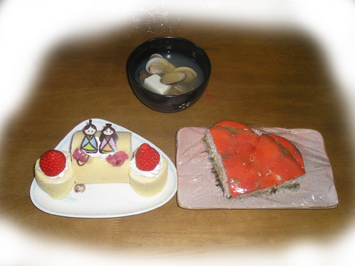 しん君いよいよ新居へ引越しです。 入居の前に近くの神主さんに来ていただいてお祓いをしてもらいました。 蒔いていただいたのはご幣と麻だそうです。 2月24日 明日はしん君のお引越しの日。 彩葉とアンジーを迎えにいきました。 今夜はうちにお泊りです。 お風呂はパパちゃんが彩葉と美耀花を入れて夕飯の後はふたりで仲良くお絵かきです。 ばばとふたりぐずりもせずに寝てくれました。 3月1日 昂暉が天丼っていうので天霧で天丼セットです。 天丼は昂暉でうどんは美耀花でちょうどいい量です。 その後は、いつものスポーツセンターへ。 3月3日 yokoちゃんに作ってもらったお弁当をもってやってきました。 今日はお雛様 テーブルの上においてありました。 |