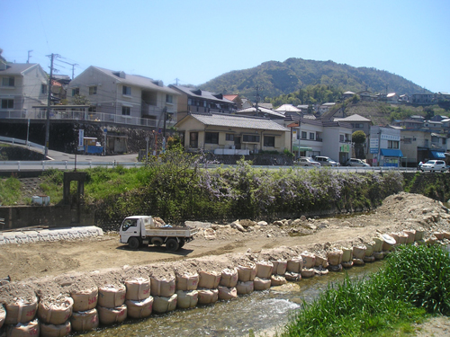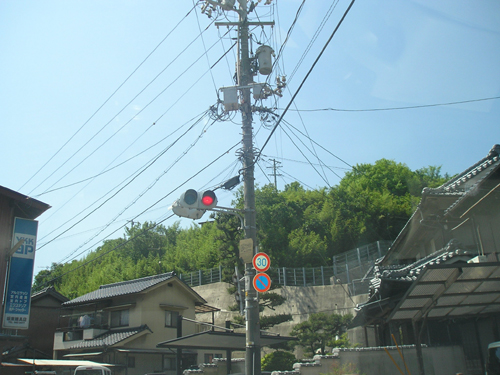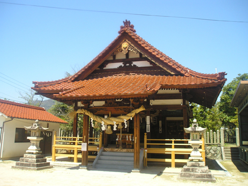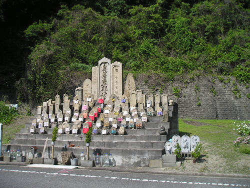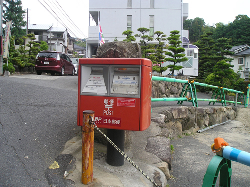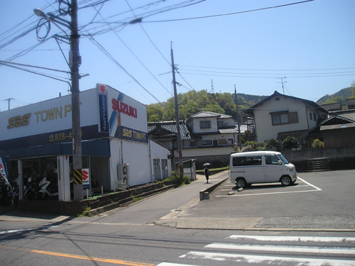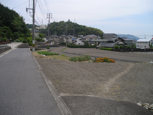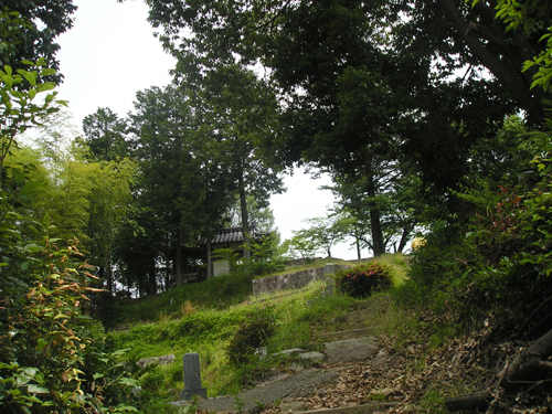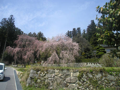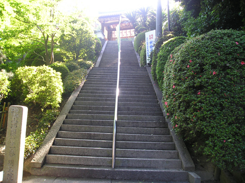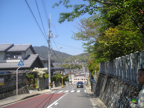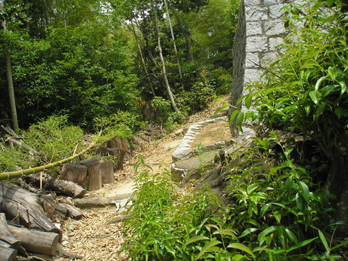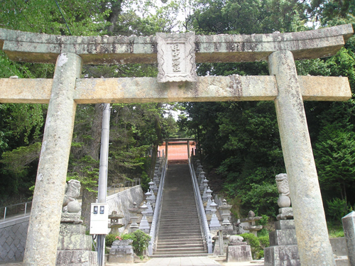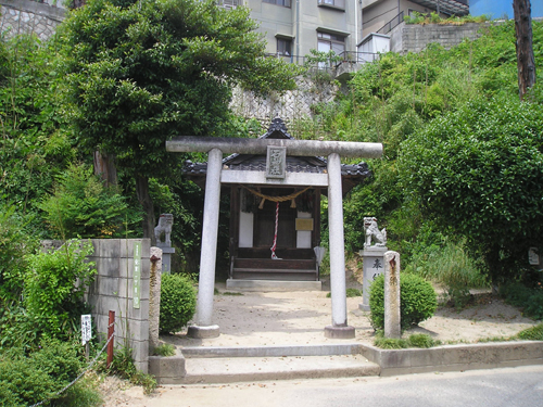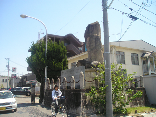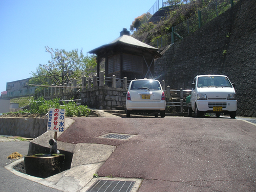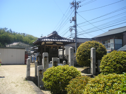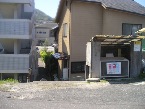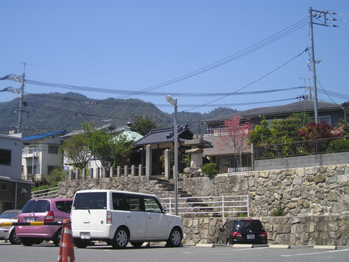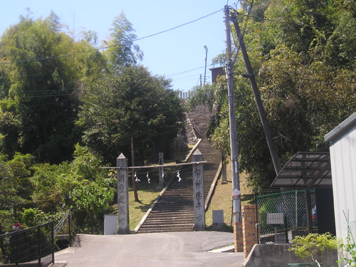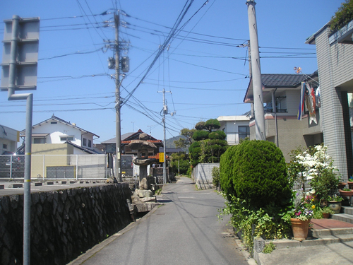 4月最後の日曜日。 地図では分かりにくいごみ置き場を曲がって恐る恐る民家の間を降りて行くと、間違っていなかったようで、萩尾山神社の表参道と石灯篭を発見。