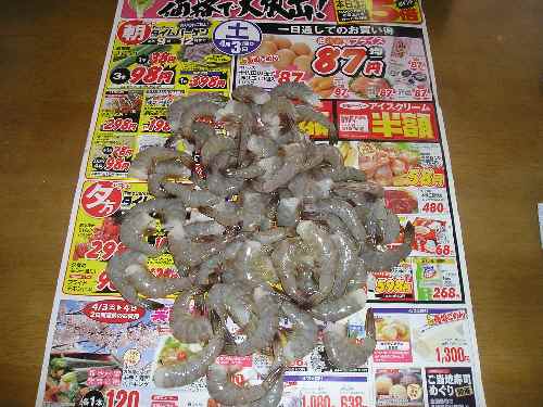 たいてい野菜の詰め放題やってますが。 今日は、バナベイエイ詰め放題。 早く起きてきた昂暉を連れて朝一行きましたよ。 エビが好物の昂暉はどんどん詰めて~. これで398円。 これだけあれば 天ぷら・えびマヨ・天丼等々 |